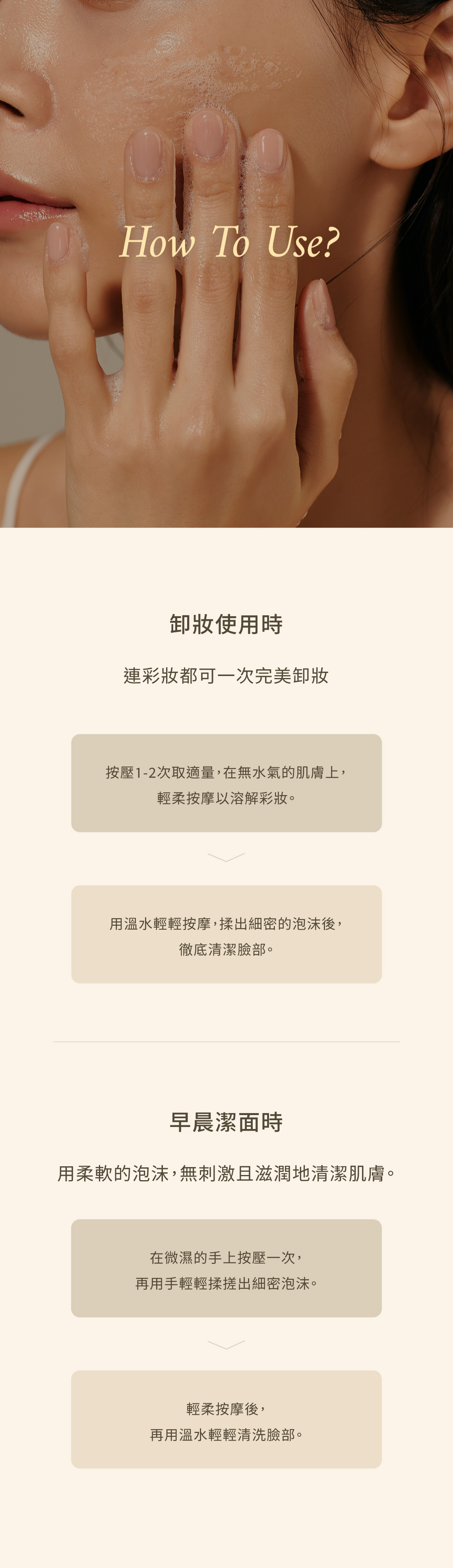 保濕洗臉 | 卸妝 | 特殊泡沫變形配方 | 通過低刺激性測試
