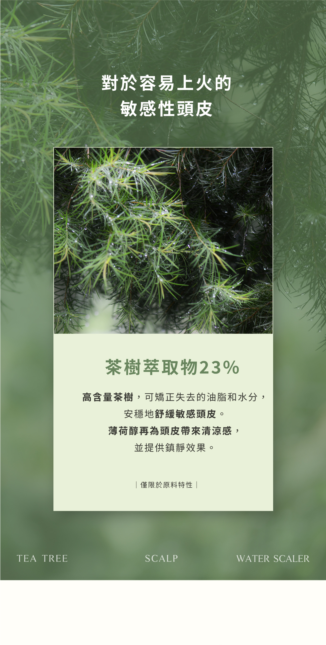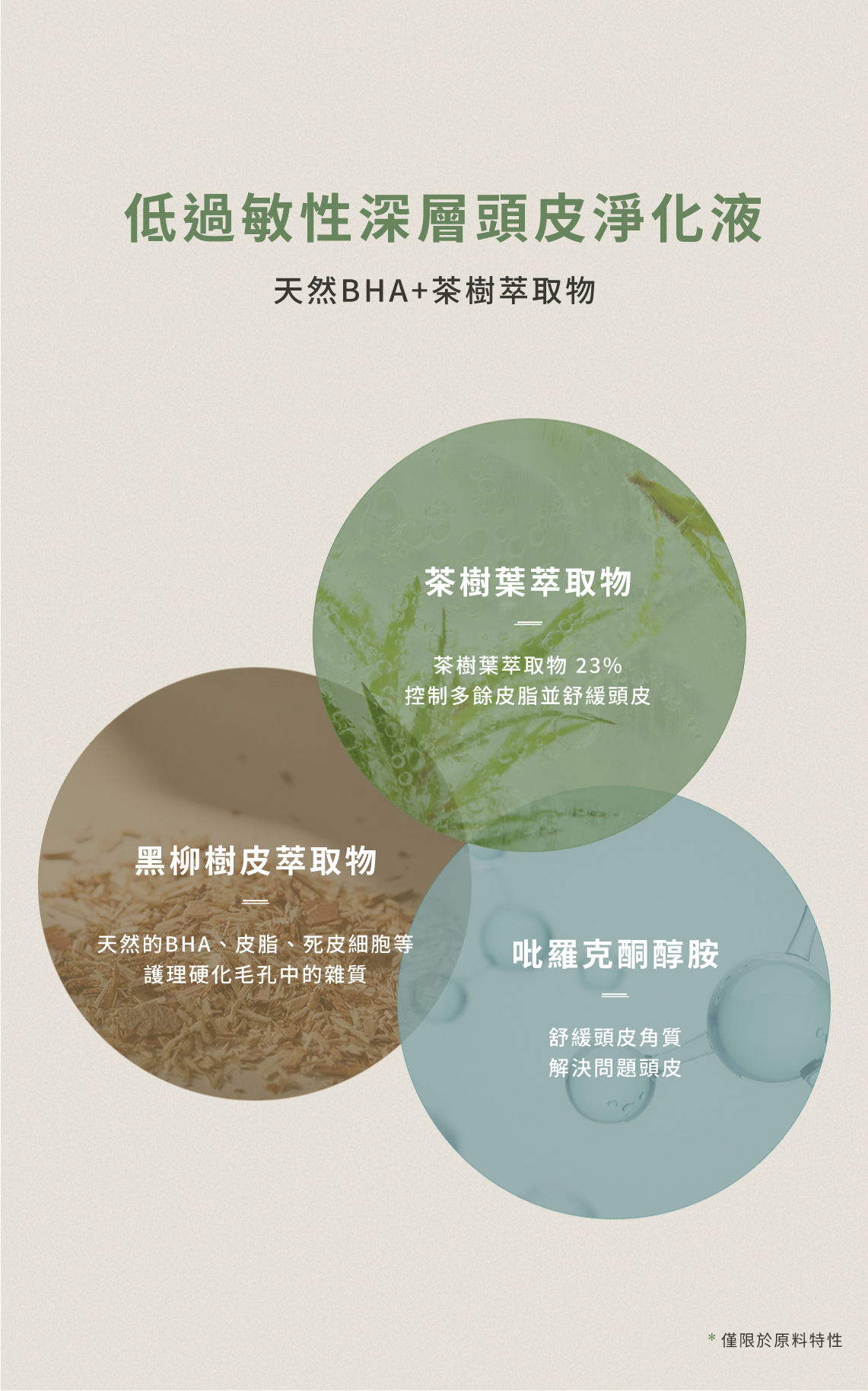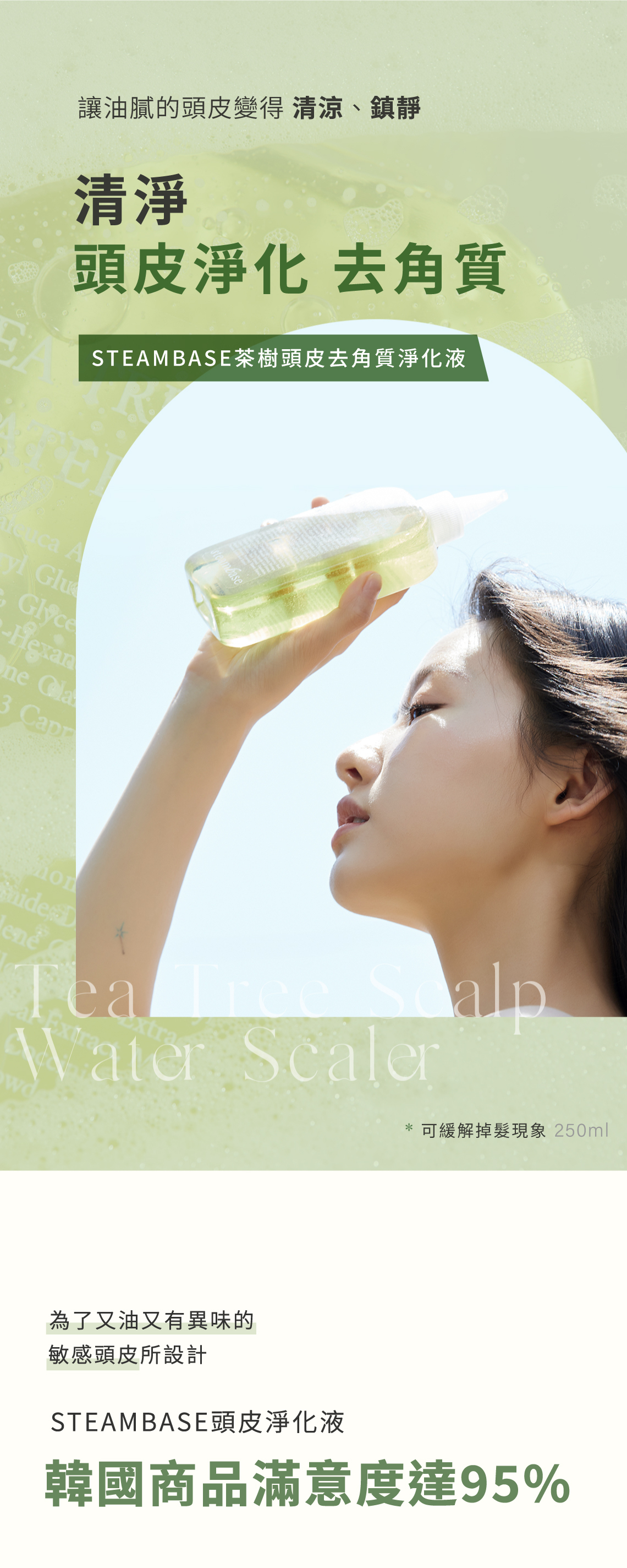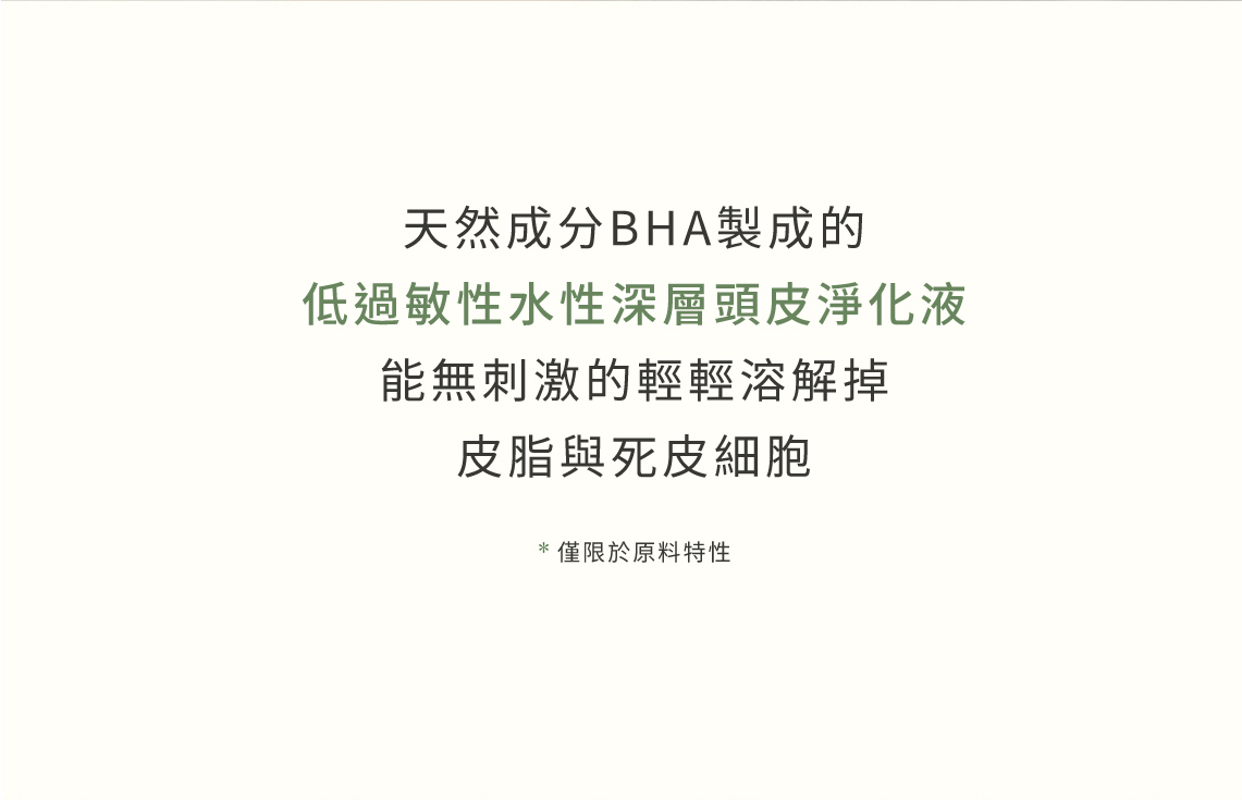 天然BHA+茶樹萃取物,控油舒緩頭皮角質